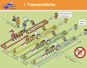 Bij de looponderdelen zie je al het verschil tussen de sprintafstanden (40 of 60 meter) en de "Mila" afstanden. Dat laatste gaat via het onderdeel Meters Maken. In 4 of 6 minuten zo ver mogelijk zien te komen op de 400 meter baan. En dan na de toeter lekker naar boven afronden. Ook diverse estafette onderdelen op het programma.
