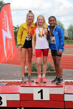 Roek (JPC) liep een razendsnelle 6,62 op de 40 m sprint (PR en CR!) en stelde daarmee de 1e plek veilig. Fleur (MPA1) werd eerste bij kogel (8,92) en 60m (9,01) en bleef zo al haar concurrenten voor. Ook Roosje (MPA2) zette een snelle tijd neer op de 60m sprint (8,70) en legde daarmee de basis voor haar 2e plek bij dit ‘kampioenschap’.